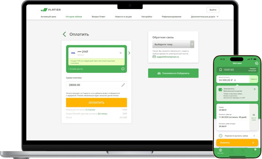 - Зайдите в ЛК Платиза